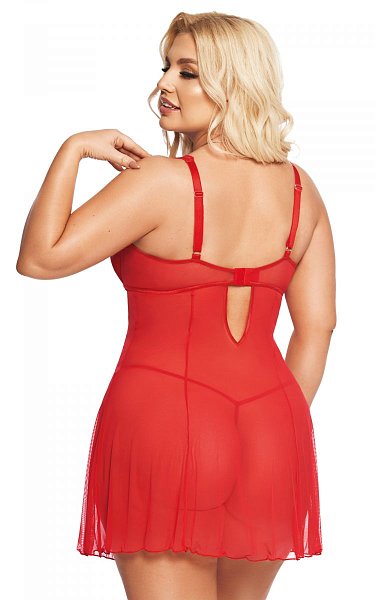 Сорочка женская из прозрачного мягкого материала с кружевным лифом на косточках и плотной чашкой. В комплект входят стринги. В комплекте: сорочка, трусики-стринги.