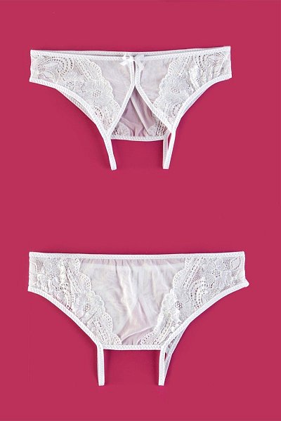 Эти оригинальные трусики из эластичной полупрозрачной сетки больше похожи на пояс… Хотя бы потому, что их нижняя часть почти полностью отсутствует.