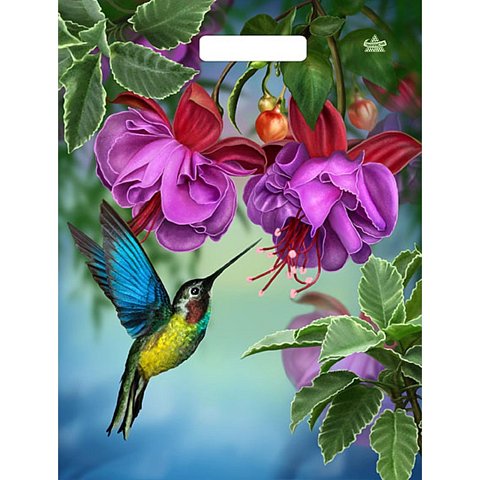 [NAME] => Пакет с принтом в виде колибри в цветах с вырубной ручкой (31х40 см)