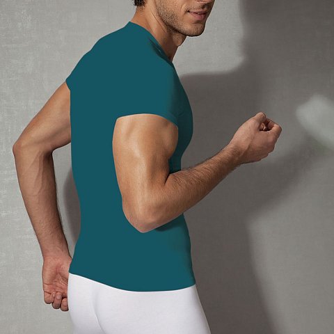 Футболка из хлопково-модальной ткани. Не имеет вырезов, приятно прилегает к коже. Прочный и гладкий материал. Подходит для ежедневного использования.