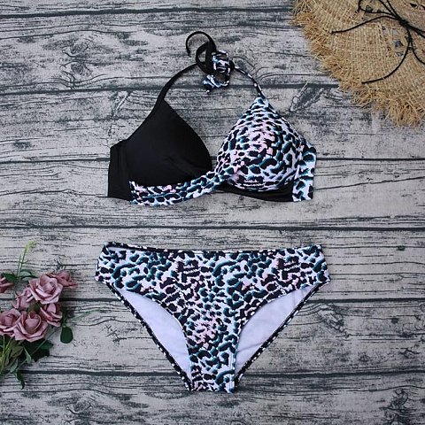 Отзывы о Раздельный купальник с анималистическим принтом и цветными пятнышками