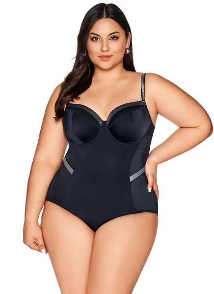 Совместный купальник с мягкой чашкой без косточек. Бретель-петля через шею. Выполнен из тонкой микрофибры с золотистым напылением.