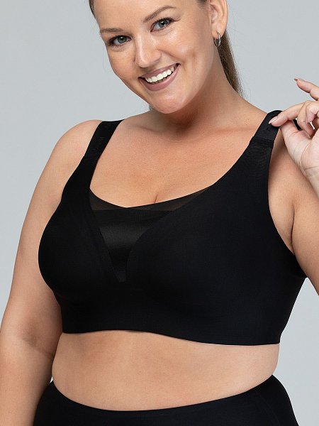 Бюстгальтер без косточек больших размеров разработан специально для женщин с пышной и тяжелой грудью. Закрытые чашки со съемными поролоновыми вставками, широкие регулируемые бретели с вышитым логотипом бренда, широкие боковые детали, застежка на крючки 4х4. Бюстгальтер бесшовный, не имеет жестких деталей, поэтому отличается повышенным комфортом, при этом надежно фиксирует грудь. Идеально подходит для длительной повседневной носки и активного времяпровождения.