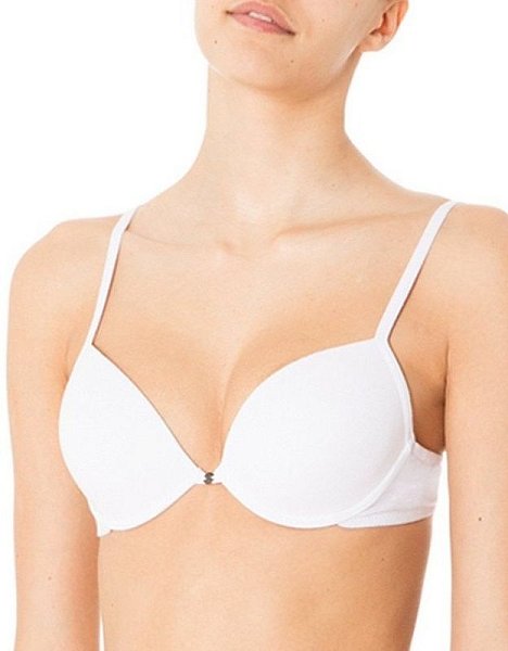 Бюстгальтер пуш-ап с градуированной чашкой из хлопковой ткани, на тонких бретелях. Декорирован небольшой подвеской между чашек.