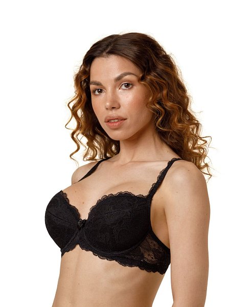 Бюстгальтер push-up из эластичного кружева. Чашка из дублированного полотна со съемным вкладышем, внутренняя часть чашки - 100% хлопок. Отделка бретели кружевом. Отлично формирует грудь.
