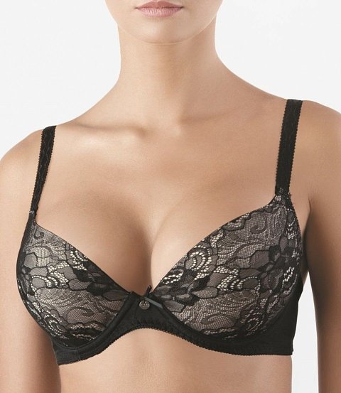 Бюстгальтер с формованными чашками пуш-ап. Гелевый наполнитель в стане. Зрительно увеличивает объем и округляет грудь. Выполнен из инновационного корректирующего материала, декорированного кружевным полотном.