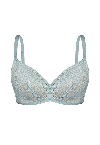 Бюстгальтер Julietta Super push up выполнен с формованными поролоновыми чашками телесного цвета без косточек, с дополнительными боковыми поддержками, внешняя сторона покрыта кружевом, спинка из кружева продублирована телесной сеткой. Бретельки не отстёгиваются, регулируются по длине, фурнитура металлическая некрашеная. На спине застёжка на удлинитель.
