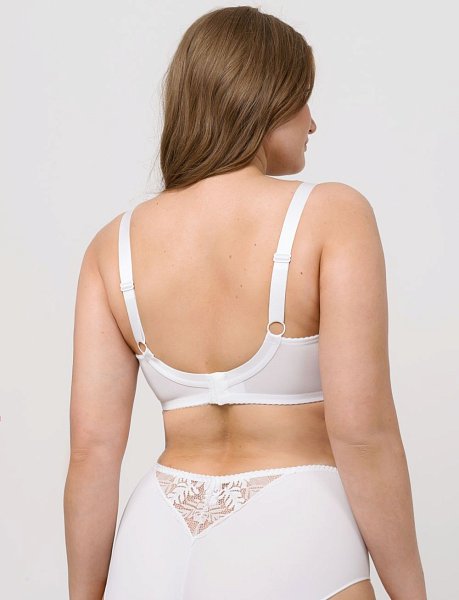 Бюстгальтер на каркасах с мягкой чашкой. Чашки овальной формы с диагональным членением создают округлую наполненную форму, эффектно приподымая грудь. Широкий стан плотно облегает тело, снимает нагрузку с плечевого пояса и обеспечивает стабильную комфортную посадку бюстгальтера на фигуре.