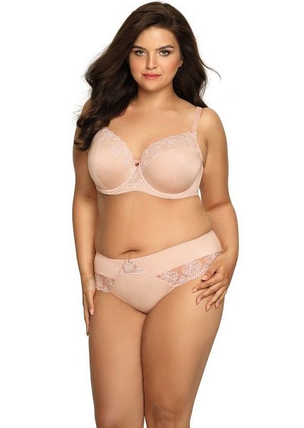 Бюстгальтер Luiza PU выполнен на косточках, чашки шитые, нижняя часть на тонком поролоне кофейного цвета, внутренняя сторона прошита хлопковым трикотажем, верхняя часть чашек из телесной сетки, внешняя сторона чашек из кружевного полотна, спинка из стабилизирующей сетки кофейного цвета. Бретельки не отстёгиваются, регулируются по длине, на спине застёжка - удлинитель на крючках, фурнитура металлическая цвета меди.