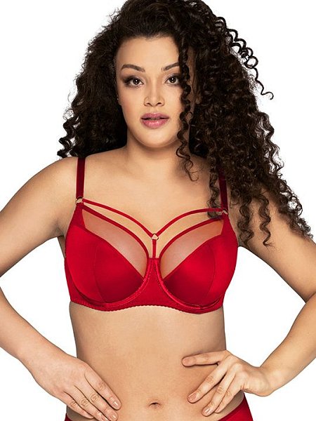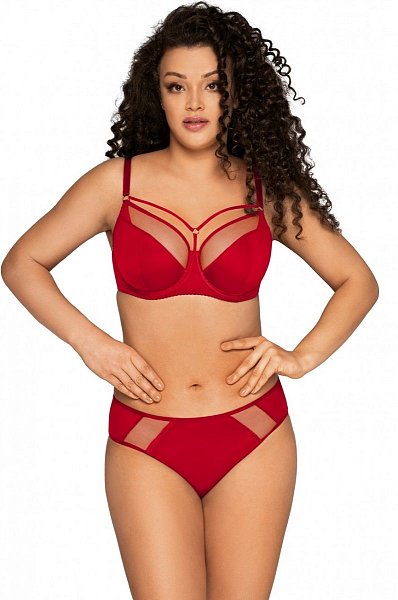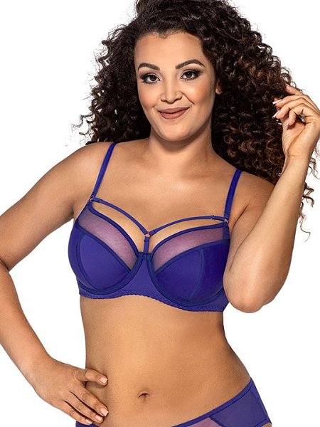 Бюстгальтер на косточках, с боковыми поддержками, чашки шитые, нижняя часть на тонком поролоне, внутренняя сторона прошита хлопковым трикотажем, внешняя гладкая, верхняя часть из тонкой сетки с вышивкой. Бретельки не отстёгиваются, регулируются, на спине.