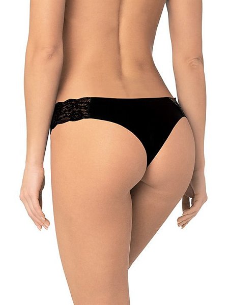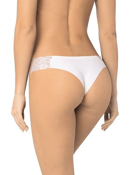 Трусы-бразилиана с актуальной V-посадкой. Модель выполнена с использованием деликатной микрофибры. Узкое цветочное кружево соединяет заднюю и переднюю детали изделия. Вырезы ножек обработаны с применением технологии лазерного края. Хлопковая ластовица притачана к изделию потайным швом. Благодаря особенностям обработки материалов изделие абсолютно незаметно под одеждой.