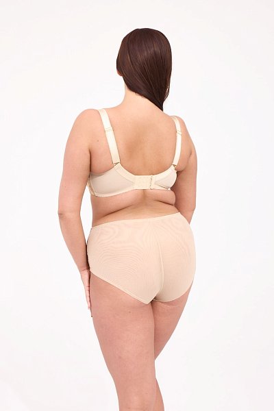 Женские трусики выполнены из сетки с принтом, с вышивкой бежевой нитью и люрексом, спинка из сложенной вдвое телесной сетки, ластовица проложена 100% хлопком. Идеальный вариант для повседневной носки.