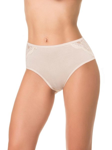 Трусы с высокой линией талии, выполнены из деликатного хлопкового полотна. Декор - кружевные вставки на передней детали.